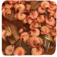 水に浸けて軽く塩出しをしたあと、大阪湾で獲れすぎた海老じゃこと一緒に炊いたのが