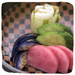 ぬか漬けはお金のかからない保存方法として使われていましたが、多くとれすぎた水なすを次々上から継ぎ足して漬けていたので、下にどんどん長く漬かったものがたまり、「古漬け」となりました。